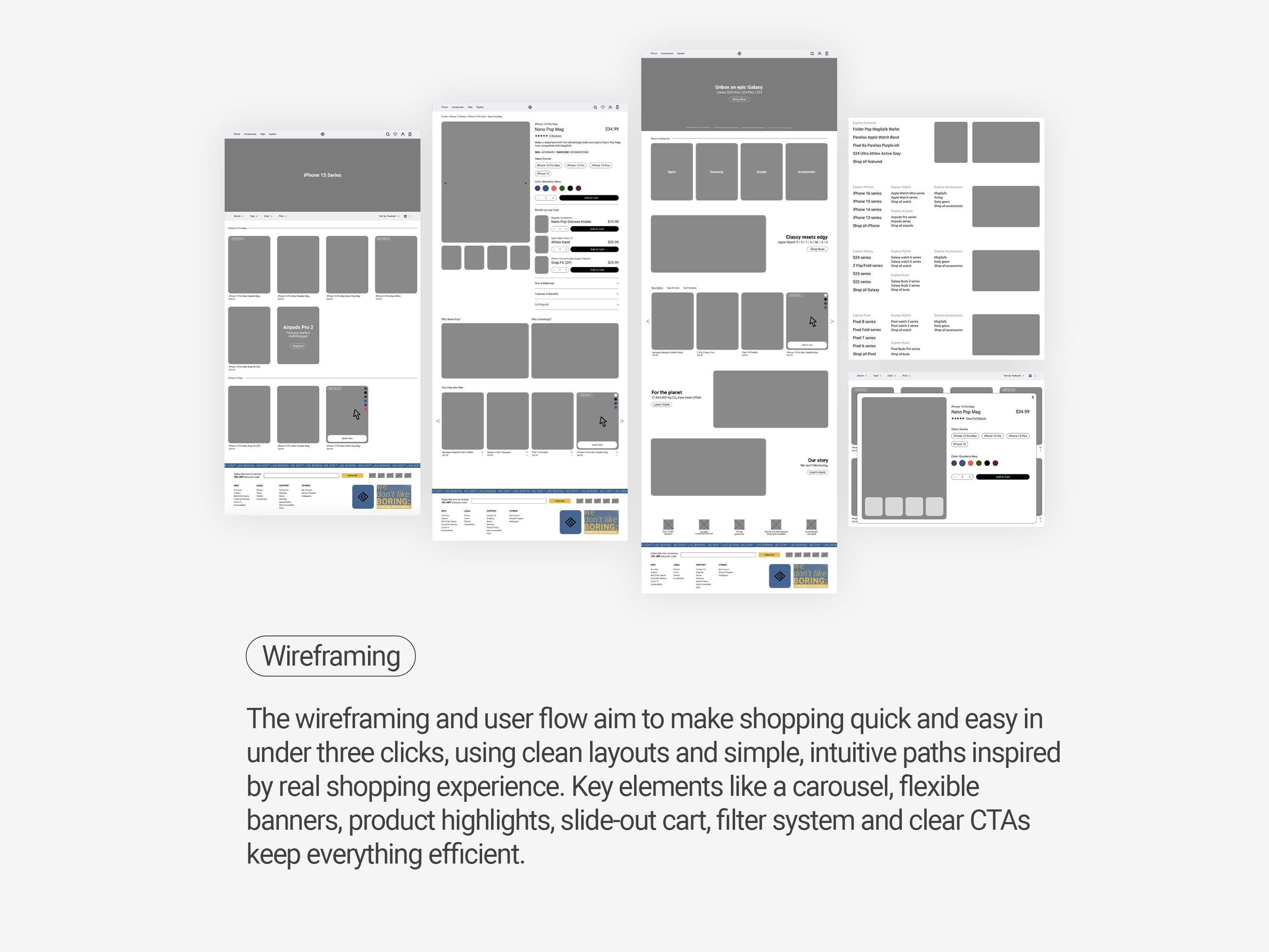 Though the launch was halted due to its merger under Spigen, the project served as an opportunity to refine my UX and branding approach—bridging bold visual identity with thoughtful, user-centered design.